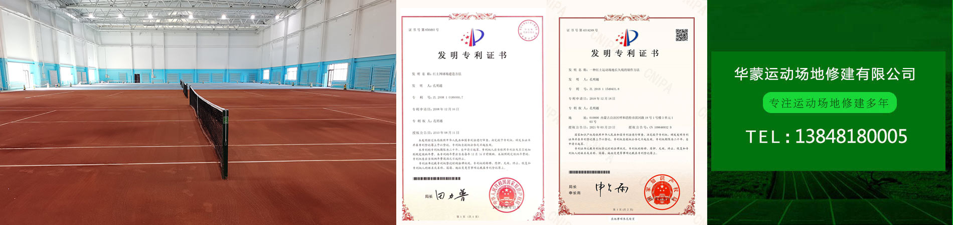 "紅土網球場地建造方法”獲得了實用專利技術證書,解決了紅土場地長畫線及畫線難的問題;產品綠色環(huán)保——通過權威認證機構無毒環(huán)保檢驗。